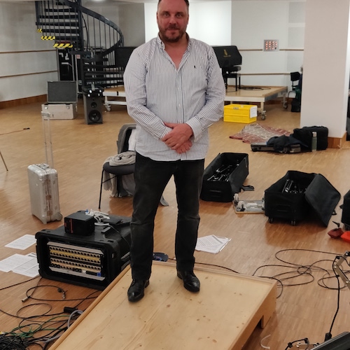 Matthias Goerne auf einem Resonanzio-Podest für eine Schubert-CD-Aufnahme